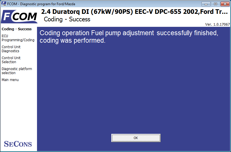 エンジンコントロールユニット(PCM)とFCOMで接続します。機能 燃料ポンプの調整は、メニュープログラミング/コーディングにあります。燃料ポンプの調整には、PATS ログイン、キーの削除などの他のコーディング機能を選択する必要はありません。